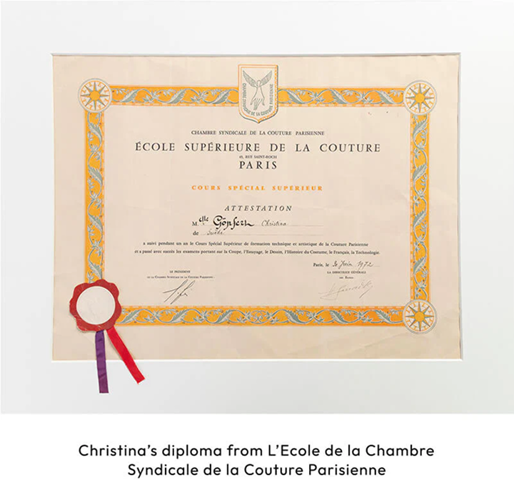 Angetrieben von ihrer unerschütterlichen Leidenschaft für Design und Mode, fasste Christina Anfang der 1970er-Jahre den mutigen Entschluss, ihren Traum zu verwirklichen und nach Paris zu ziehen. Im Herzen der Welthauptstadt der Mode schrieb sie sich an der renommierten L’École de la Chambre Syndicale de la Couture Parisienne ein, einer Schule, die für die Ausbildung der einflussreichsten und vielversprechendsten Haute-Couture-Designer ihrer Zeit bekannt war. Dies war ein Wendepunkt in Christinas Leben, denn er markierte den Beginn ihrer Reise zur Meisterschaft im Modedesign durch die Haute Couture.